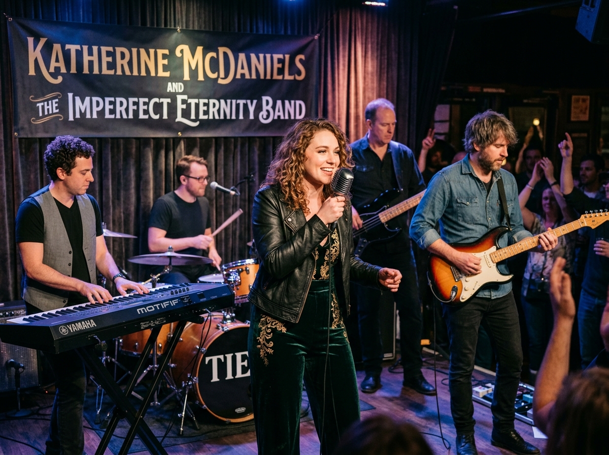 On the stage, as the music kicks into full gear, Katherine McDaniels begins to belt out the words.