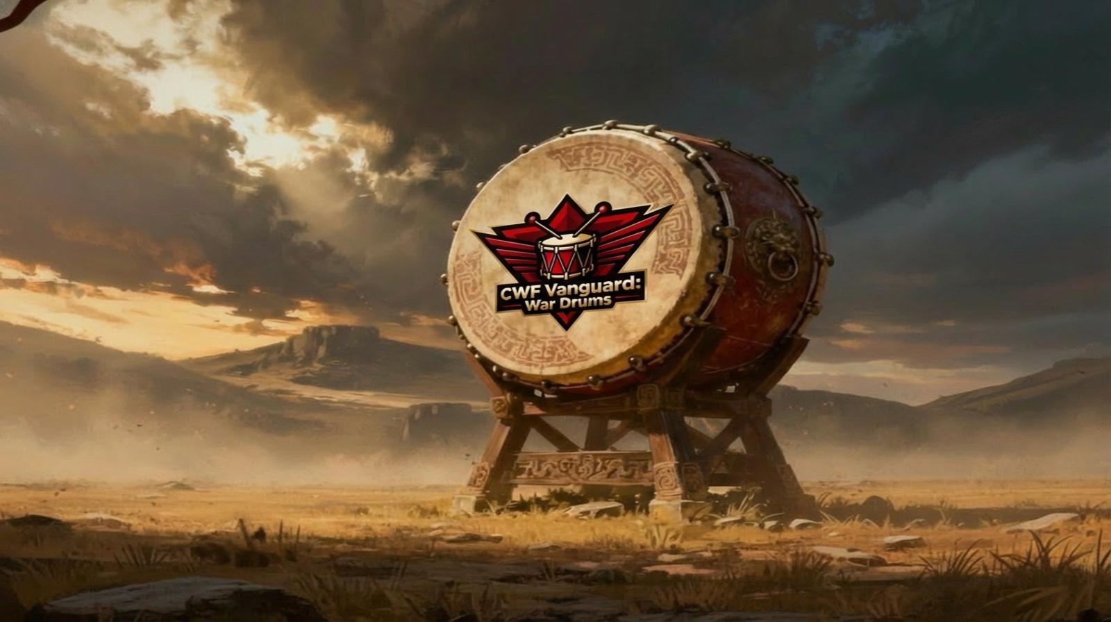 The patented CWF Drone flyby opening starts as the drones fly through the crowd of the entire overhead view of the crowd in the State Farm Center in Champaign, Illinois. As the drones fly over the crowd the theme for Wardrums starts to play through the arena and over your streaming access, either through the CWF website, cable provider, or streaming access.